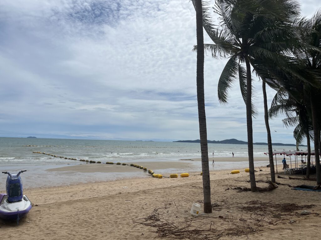 バンコクからバスでおおよそ2時間でパタヤへ。そこからさらにタクシーなどで20分くらい南へ下ると、ジョムティエン(Jomtien)という地域となります。ジョムティエンビーチという砂浜が広がり、パタヤ中心地に比べると比較的静かでのんびりとした雰囲気で、観光ガイドにも親子連れなどファミリーにおすすめ(本当?)と書いてある場所です。なにかあるのかといえば、まあビーチはあるけどそれ以外は・・・なんかありましたっけ?